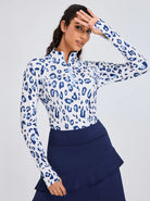 Upgrade your wardrobe with our Blue Leopard Quarter-Zip Long-Sleeve Shirt. This shirt features lightweight, four-way stretch fabric for unrestricted movement. Thumbholes, a stand-up collar, and a quarter-zip design offer extra warmth and protection, while side pockets provide convenient storage. It’s ideal for outdoor activities and casual wear.