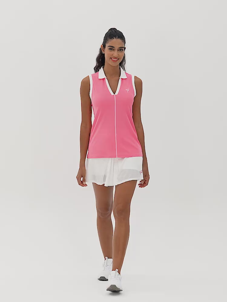 Part of our versatile Call of the Wild Collection, this sleeveless polo is designed for both style and performance. The classic pink and white design adds a bold, spirited touch to your game, ensuring you stay cool and protected on the course or court.