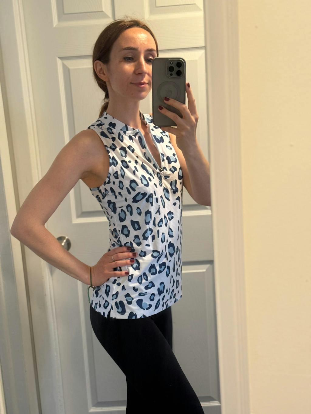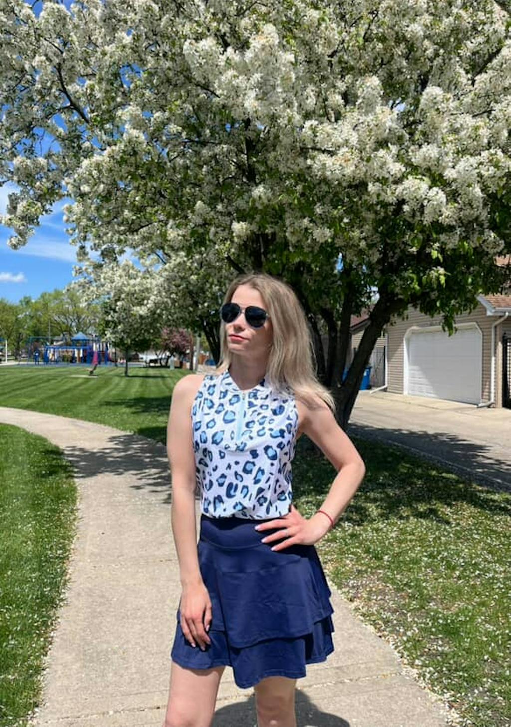 Blue Leopard Racerback Quarterzip Sleeveless Golf Polo Shirt