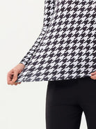 Crafted from breathable, moisture-wicking fabric, our houndstooth print long-sleeve polo keeps you cool and dry. The 4-way stretch material allows for unrestricted movement, ensuring you can reach every shot. The convenient snap button closure with block color accents adds a modern touch. Perfect for a pickleball match.