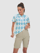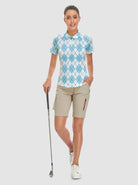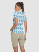 Blue and White Checkboard Short-sleeve Golf Polo for Women