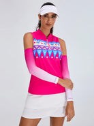 LuxeCool™ Pink Flamingo Stand Collar Sleeveless Shirt