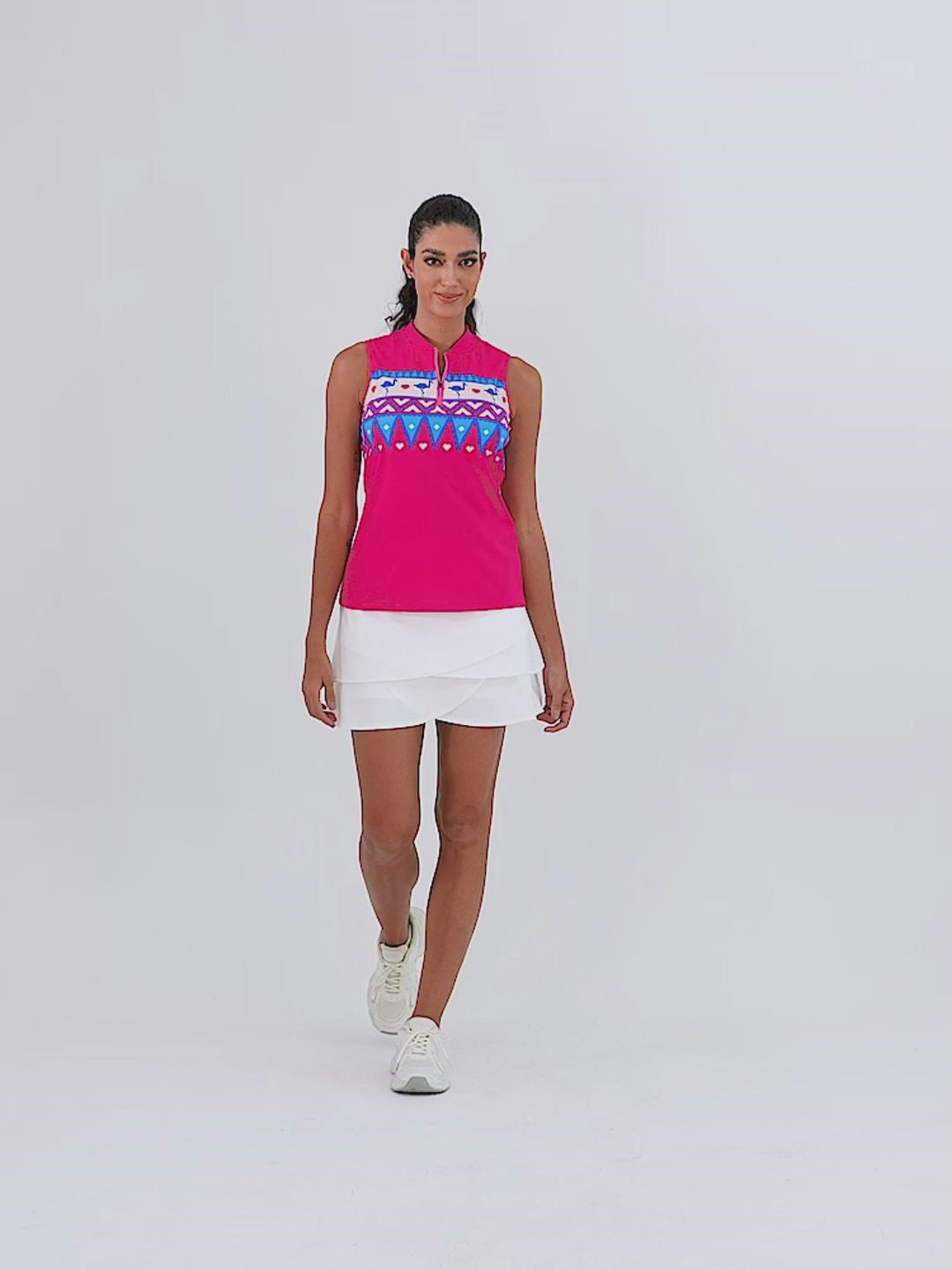 Embrace the course winds and unleash your freedom with Swing Unbounded. Inspired by boho chic's vibrant spirit, this collection breaks free from rigid styles. Designed for the woman who finds liberation in every swing, our golf polo features fluid silhouettes, paisley patterns, and stand collar design—a celebration of your authentic self. Swing for freedom, for life, for the untamed soul.