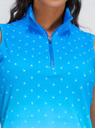 Bring a playful touch to your activewear collection with our quarter-zip polo shirt featuring a blue gradient pattern. This shirt is expertly crafted for both comfort and performance, thanks to its 4-way stretch and moisture-wicking fabric that keeps you cool and dry. The soft and breathable material ensures all-day comfort, making it ideal for sports, as well as for everyday wear. No matter what your day holds, you'll look and feel fantastic!