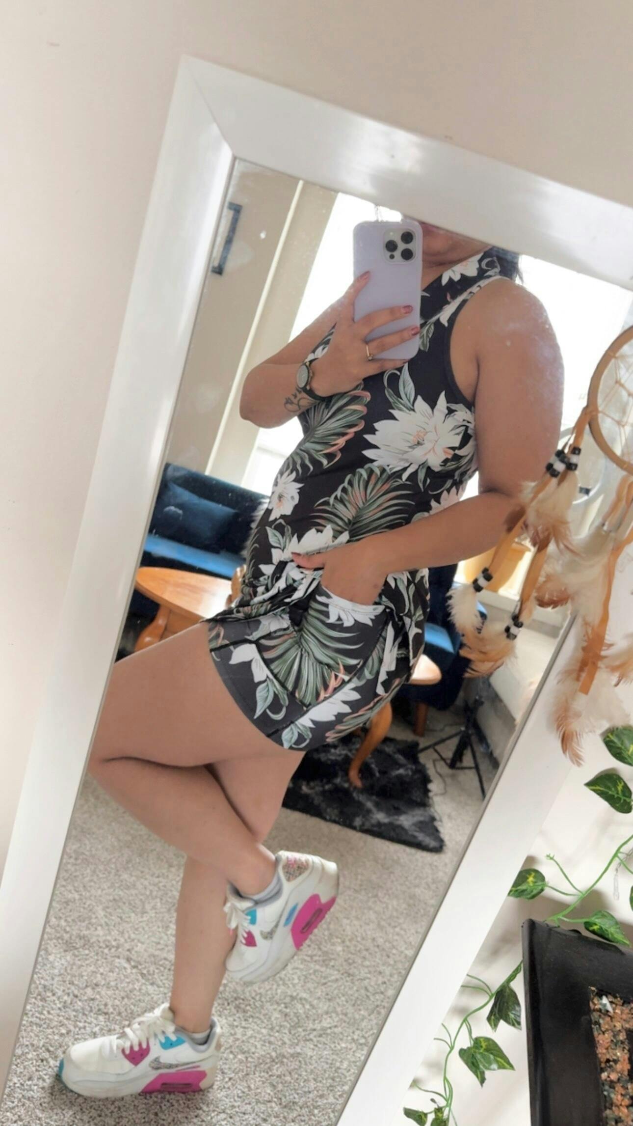 32" White Floral Racerback Sleeveless Dress with Shorts