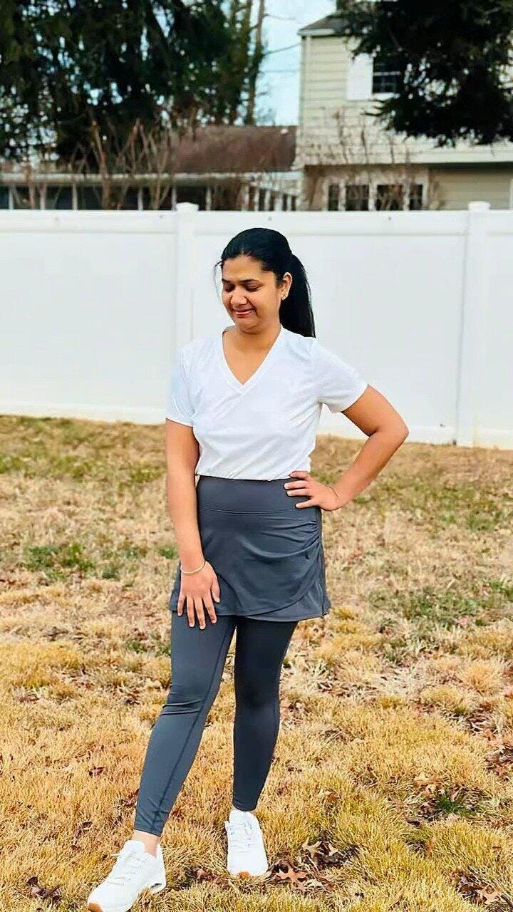 Basic Cross-over hem Pleated Active Skirted Leggings