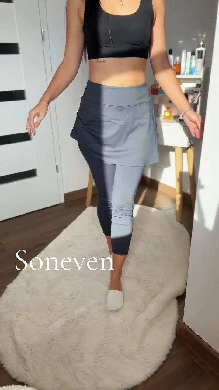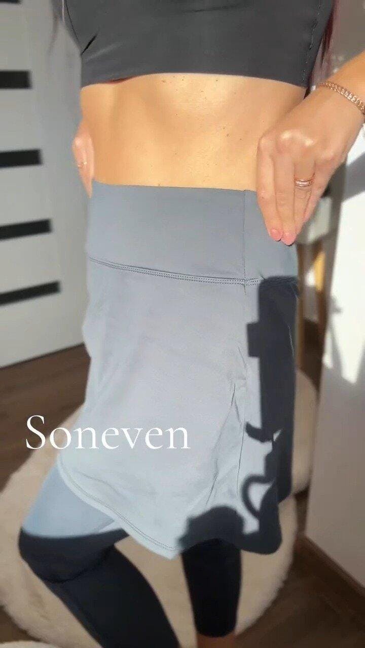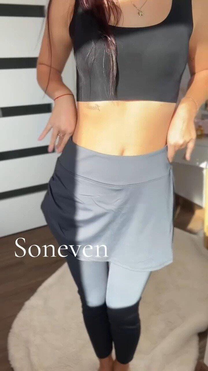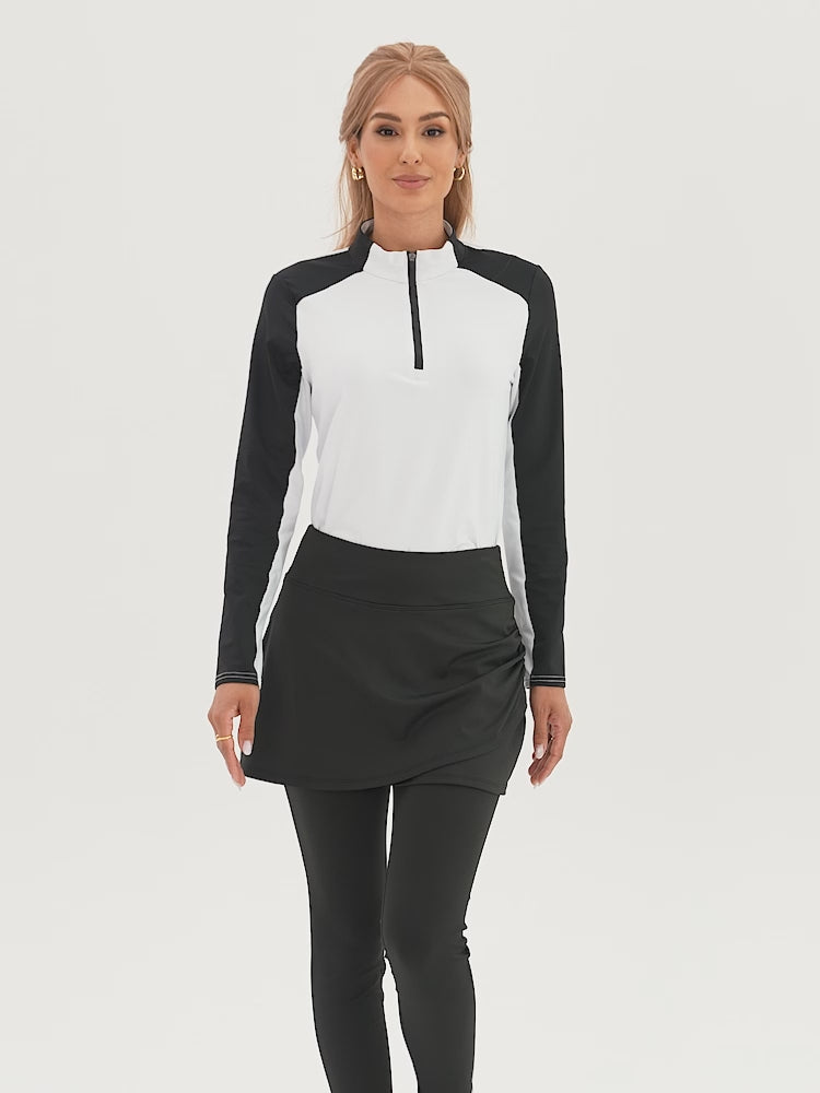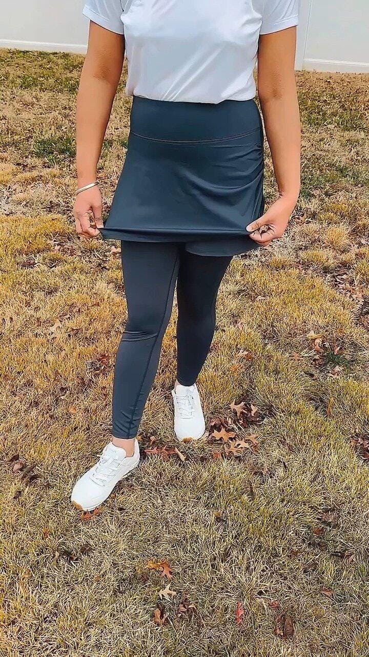 Move with confidence in our cropped leggings with a playful crossover hem and pleated skirt. Designed for both style and performance, they feature a comfortable elastic waistband and handy inner pockets. The fabric offers 4-way stretch and is both moisture-wicking and breathable. Available in black, blue, and grey, they're perfect for golf, tennis, pickleball, or everyday wear.