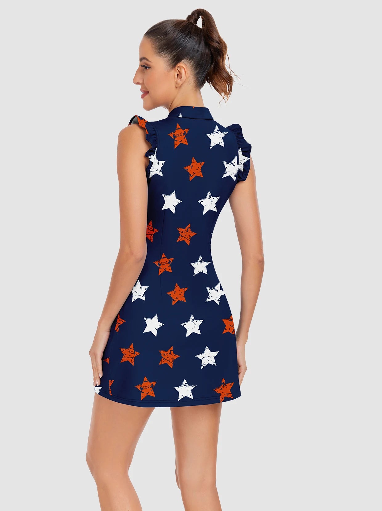 Basic 34" Quarter-zip Ruffled Sleeveless Dresses with Shorts