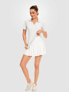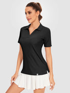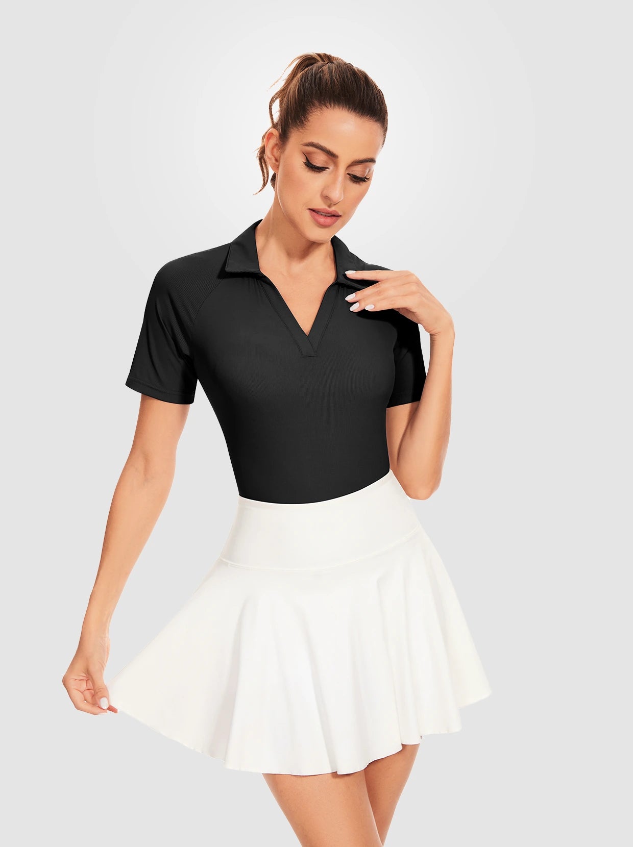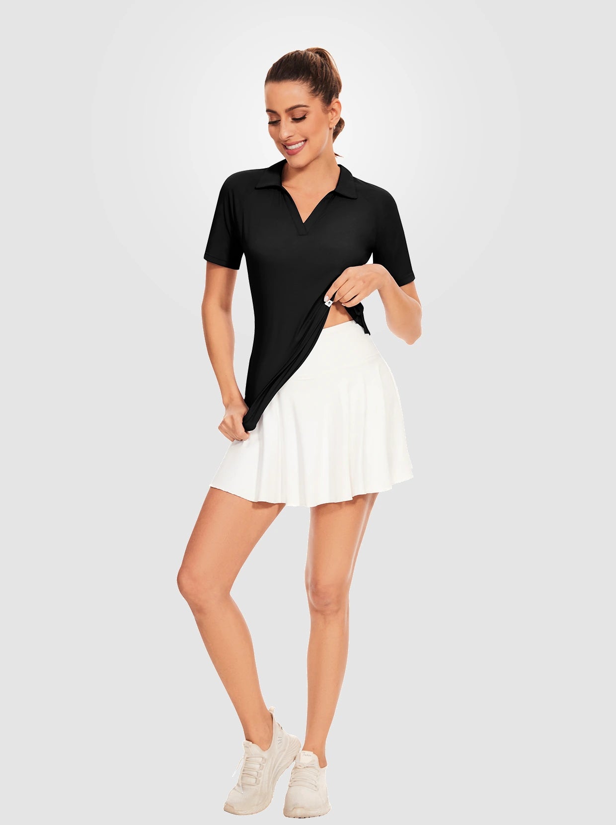 Our short-sleeve polo shirt is a versatile addition to your wardrobe, perfect for any athletic activities or casual outings. The moisture-wicking material keeps you cool and dry, while the 4-way stretch and raglan sleeves provide ultimate comfort and flexibility. With its classic V-neck and solid color design, it's a stylish and practical choice for activities like golf, tennis, and pickleball. Available in both white and black, you can find the perfect color to match your style.