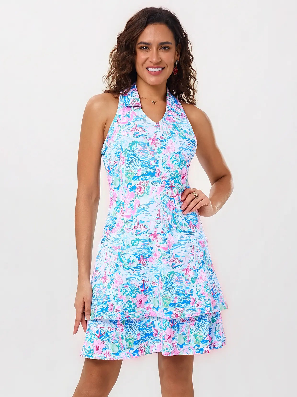 Spring Scenery Print 32"/37" Racerback Sleeveless Dress with Shorts