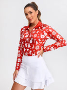 Get into the festive spirit with our Christmas print long-sleeve polo shirt. Made from soft, stretchy fabric, this top is designed to fit perfectly and keep you comfortable. The quick-drying material keeps you comfortable and refreshed. The classic polo design with a festive Christmas print is the perfect way to spread holiday cheer.