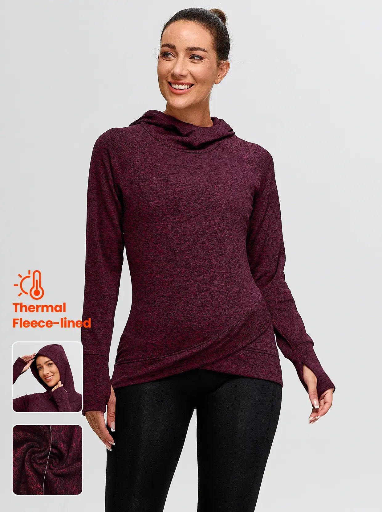 Hoodie Crossed Hem Long-sleeve Thermal Tops