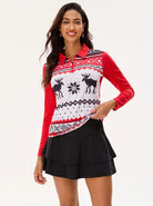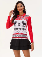 Christmas Reindeer Print Long-sleeve Polo Shirt for Ladies