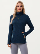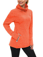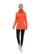 Keep cozy and dry on your run with our thermal cowl neck top. This fleece pullover is made with moisture-wicking, soft, and stretch fabric to provide ultimate comfort. The cowl neck, thumb holes, and neck gaiter offer additional warmth and wind protection. You can also pull up the cowl neck and hang it behind your ears to create a mock neck for extra protection against wind and snow.