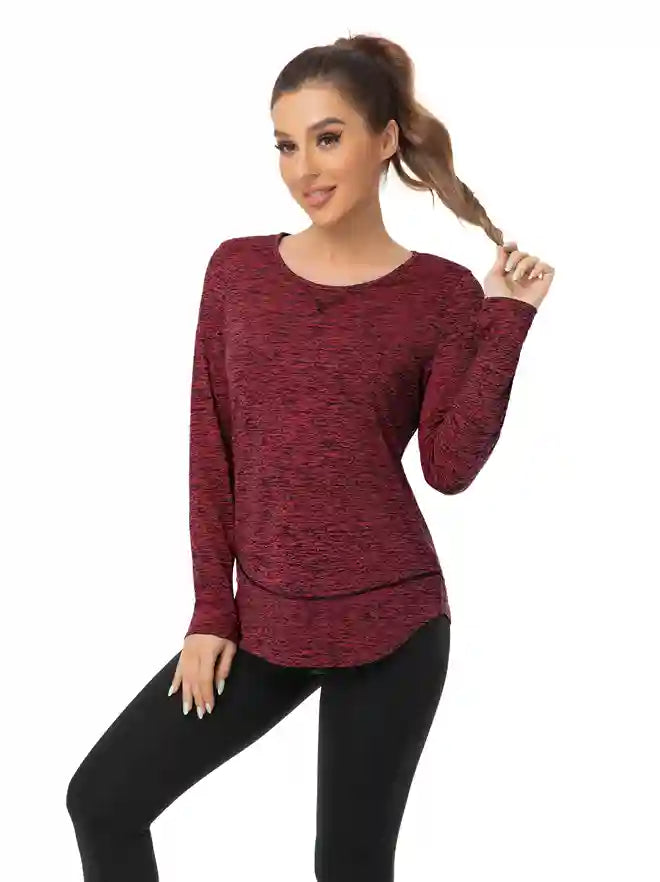 Elevate your workout wardrobe with our stylish Women's Thermal Top. Crafted from soft, quick-drying fabric, this base layer keeps you warm and cool. The 4-way stretch and curved hem offer unrestricted movement, while thumbholes keep the sleeve in place. Perfect for layering or wearing alone