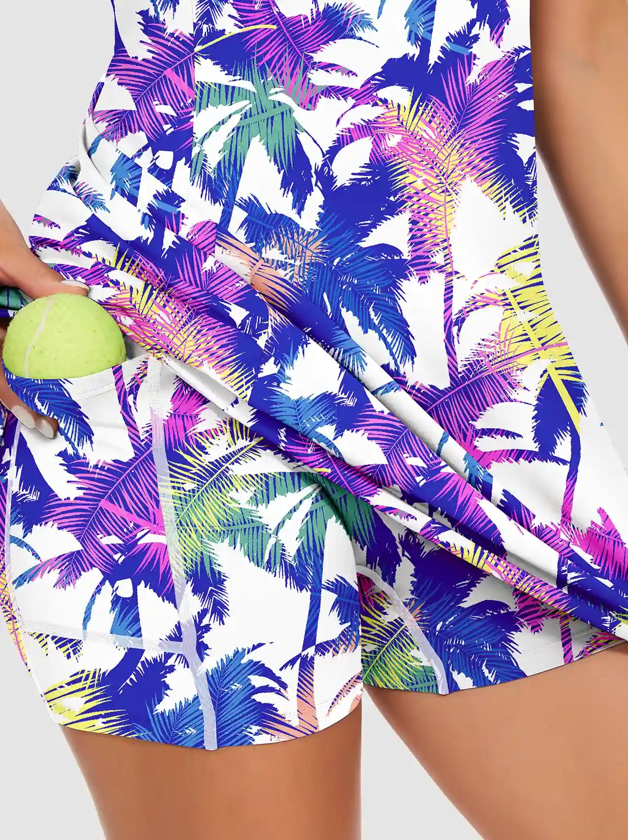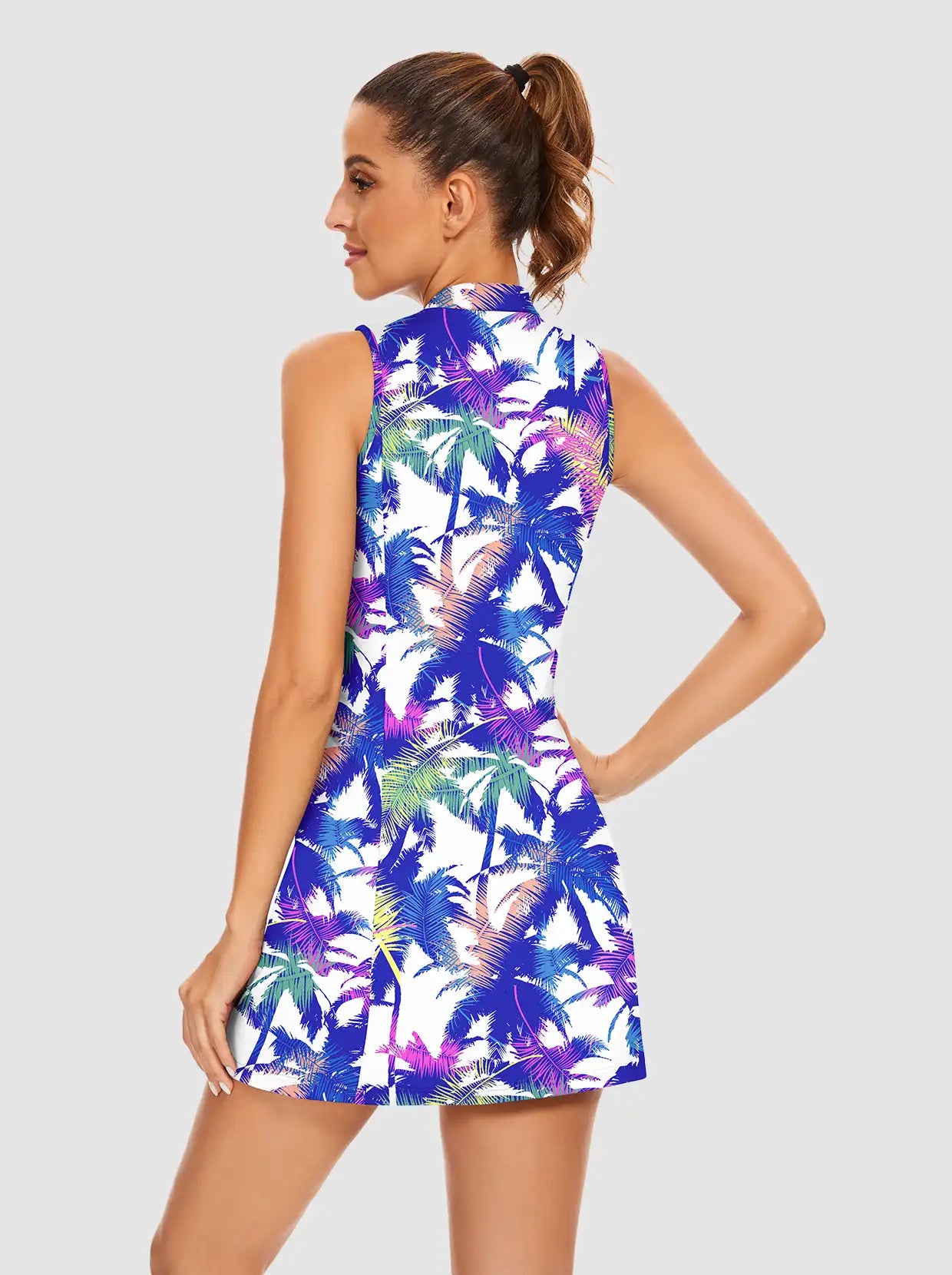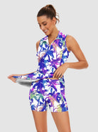 33" Colorful Leaves Quarter-zip Sleeveless Dress with Shorts