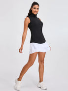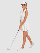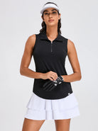 Basic Quarter-zip Sleeveless Polo Shirt For Women