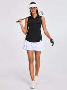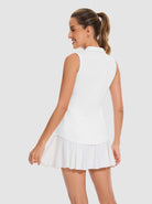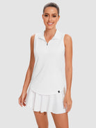 Sporty and stylish, our quarter-zip sleeveless polo shirt is your go-to top for outdoor activities. Crafted with a high-performance 4-way stretch fabric, it's designed to move with you, providing unrestricted movement and all-day comfort. The moisture-wicking and breathable properties keep you cool and dry. Available in classic solid colors of white or black, this versatile polo is a wardrobe essential, perfect for hitting the court, running errands, or simply enjoying a casual day.