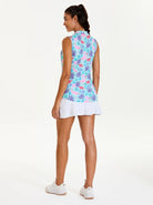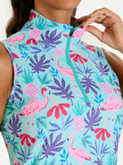 Flamingo and Leaf Print Quarter-zip Sleeveless Polo Shirt For Women