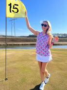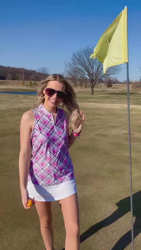 Pink and White Checkerboard Racerback Quarter-zip Sleeveless Shirt