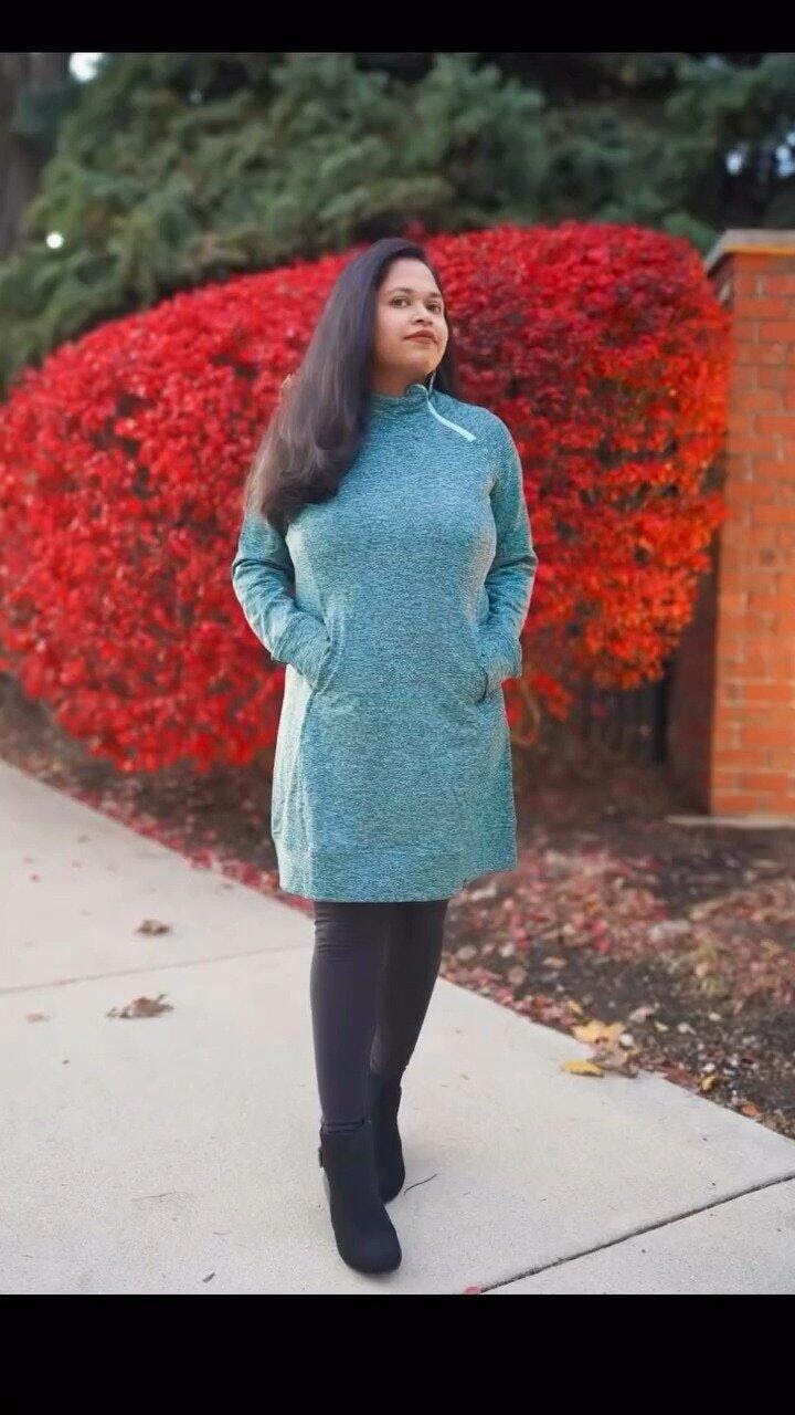 Side-zip 35" Mock Neck Long-sleeve Fleece Dress for Women