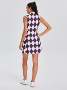 Pink Checkerboard 33" Quarter-zip Sleeveless Dress with Shorts and Pockets