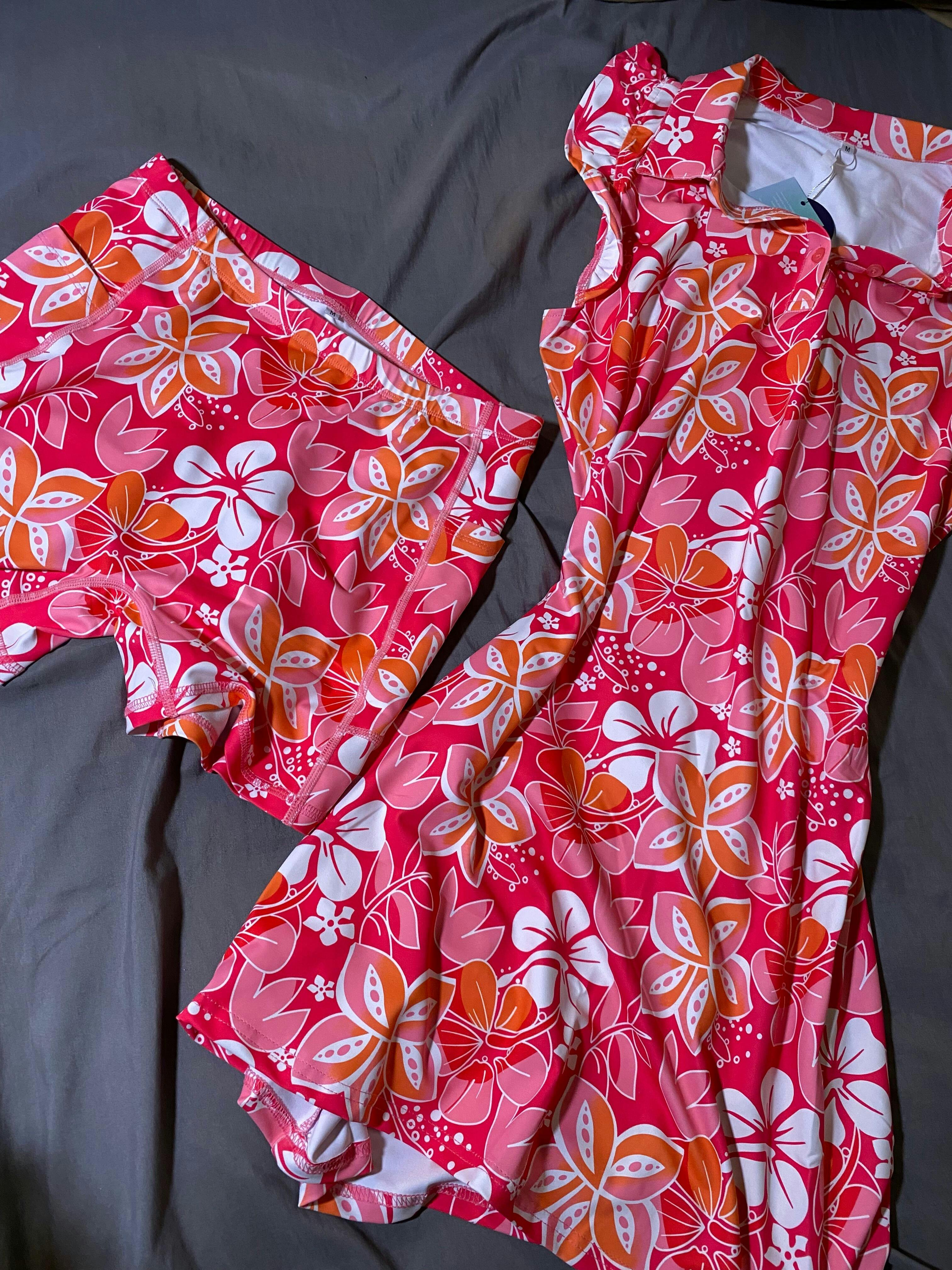 Red Floral 34" Ruffled Sleeveless Active Dress With Shorts