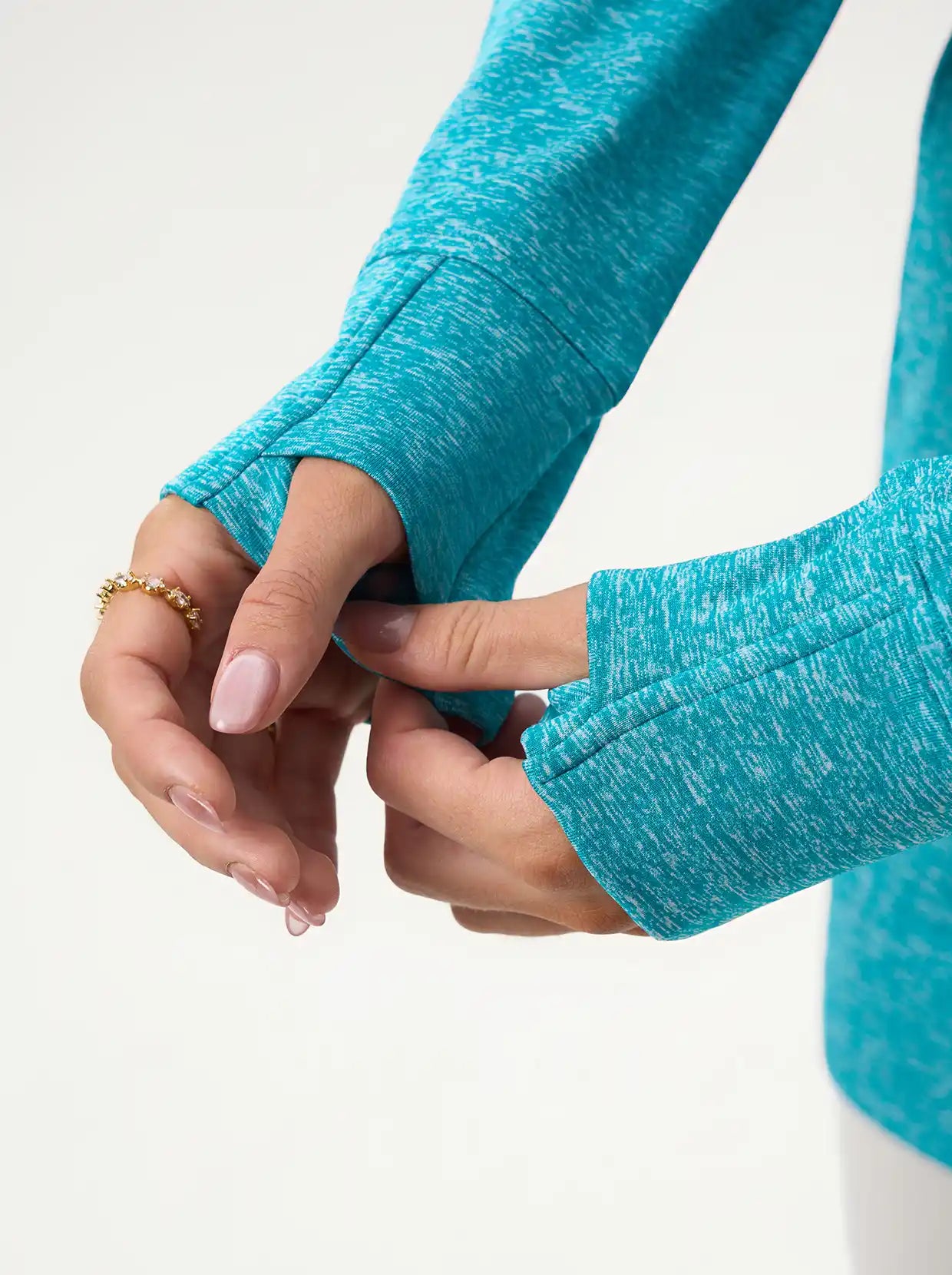 Highlights: UPF50+ (UVA/UVB), streamlined fit, thumbholes, pocket