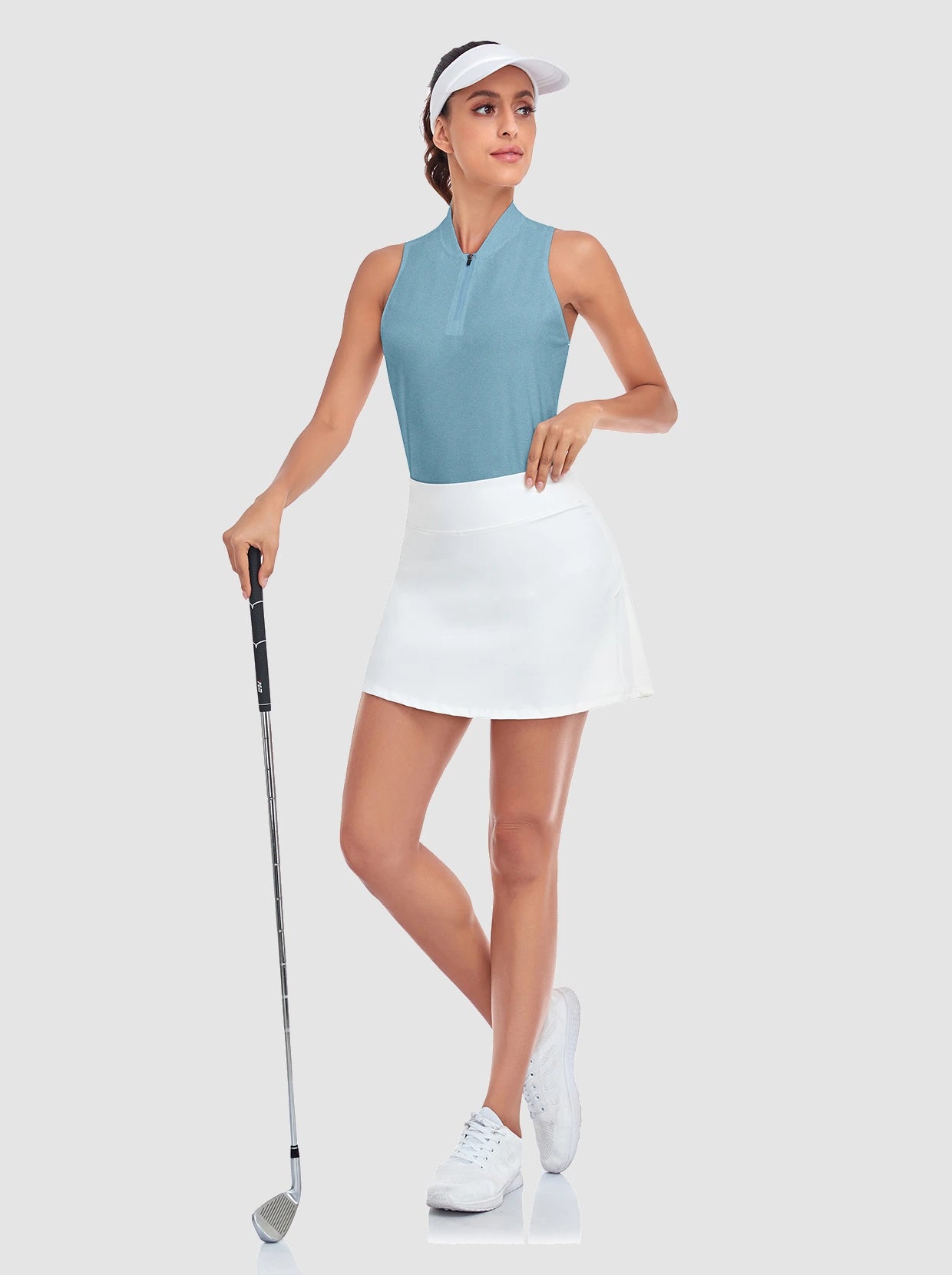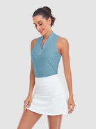 Light Blue Quarter-zip Racerback Sleeveless Polo Shirt
