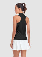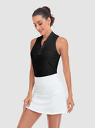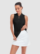 Solid Black Racerback Quarter-zip Sleeveless Shirt For Women