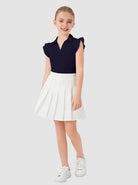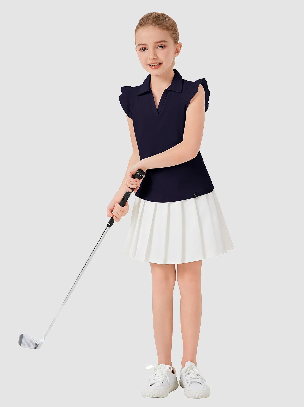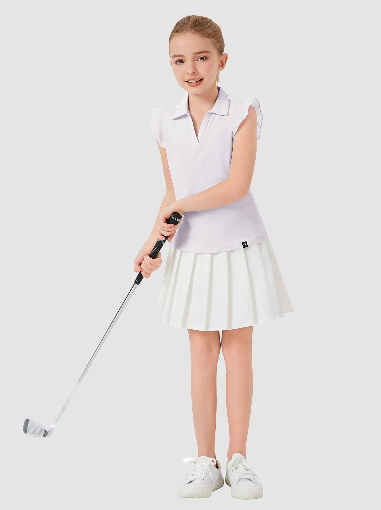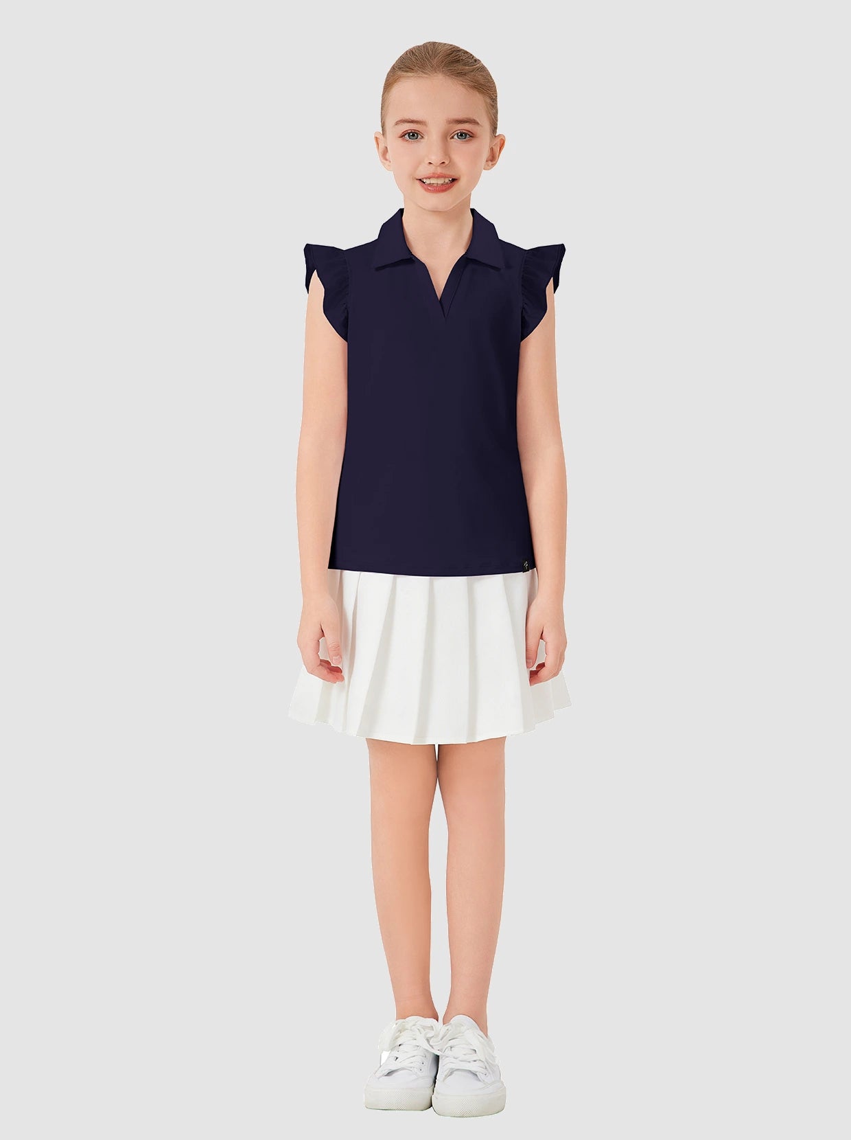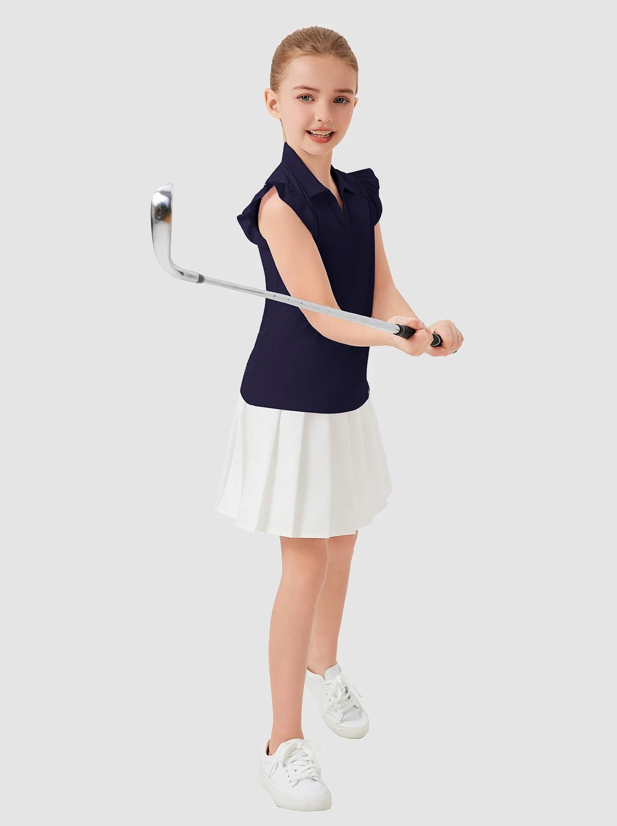 Solid Color V-neck Ruffled Sleeveless Polo Shirt for Girls