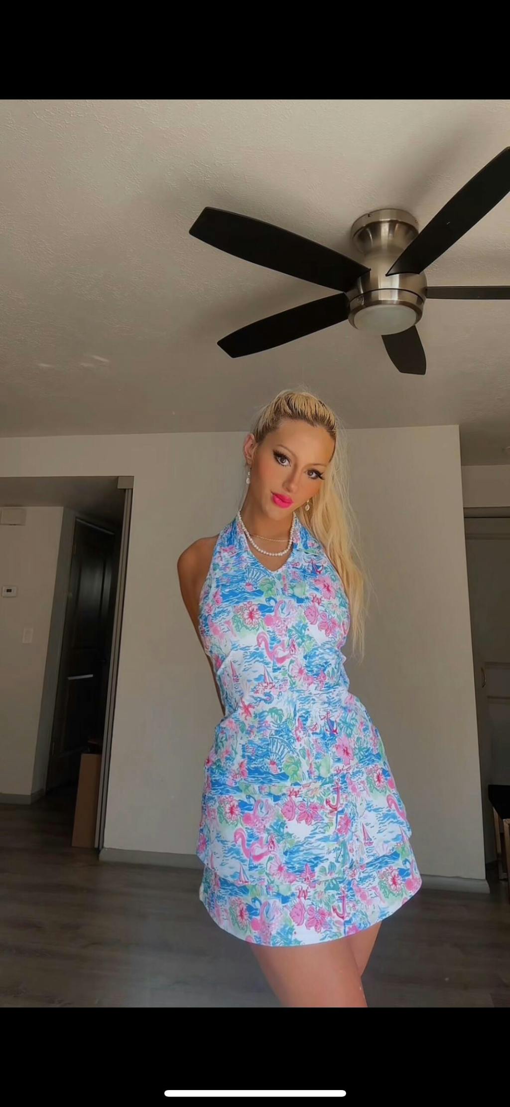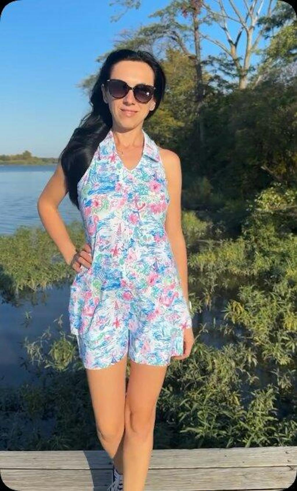 Spring Scenery Print 32"/37" Racerback Sleeveless Dress with Shorts
