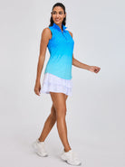 Bring a playful touch to your activewear collection with our quarter-zip polo shirt featuring a blue gradient pattern. This shirt is expertly crafted for both comfort and performance, thanks to its 4-way stretch and moisture-wicking fabric that keeps you cool and dry. The soft and breathable material ensures all-day comfort, making it ideal for sports, as well as for everyday wear. No matter what your day holds, you'll look and feel fantastic!