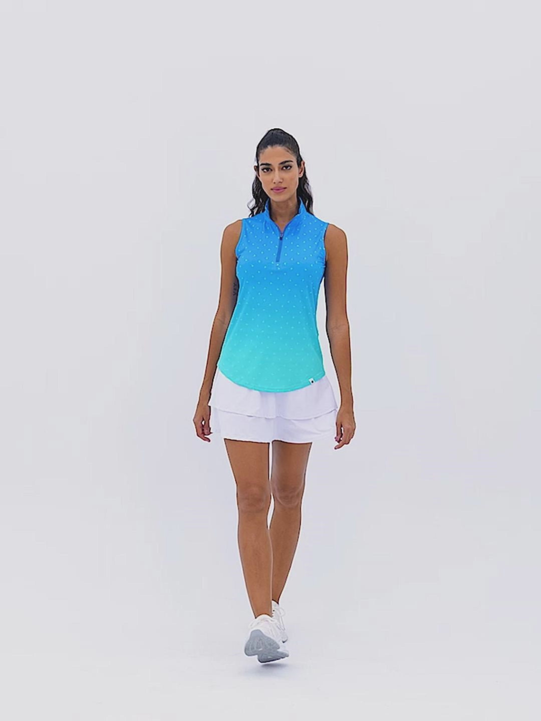 White Dot Quarter-zip Sleeveless Polo Shirt For Women
