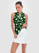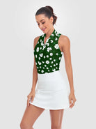 White Shamrock Quarter-zip Sleeveless Polo Shirt For Women
