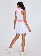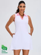 LuxeCool™ White 34“ V-neck Sleeveless Dress with Shorts and Zipper Pockets