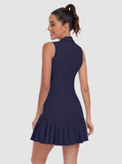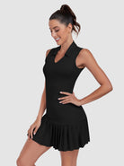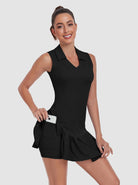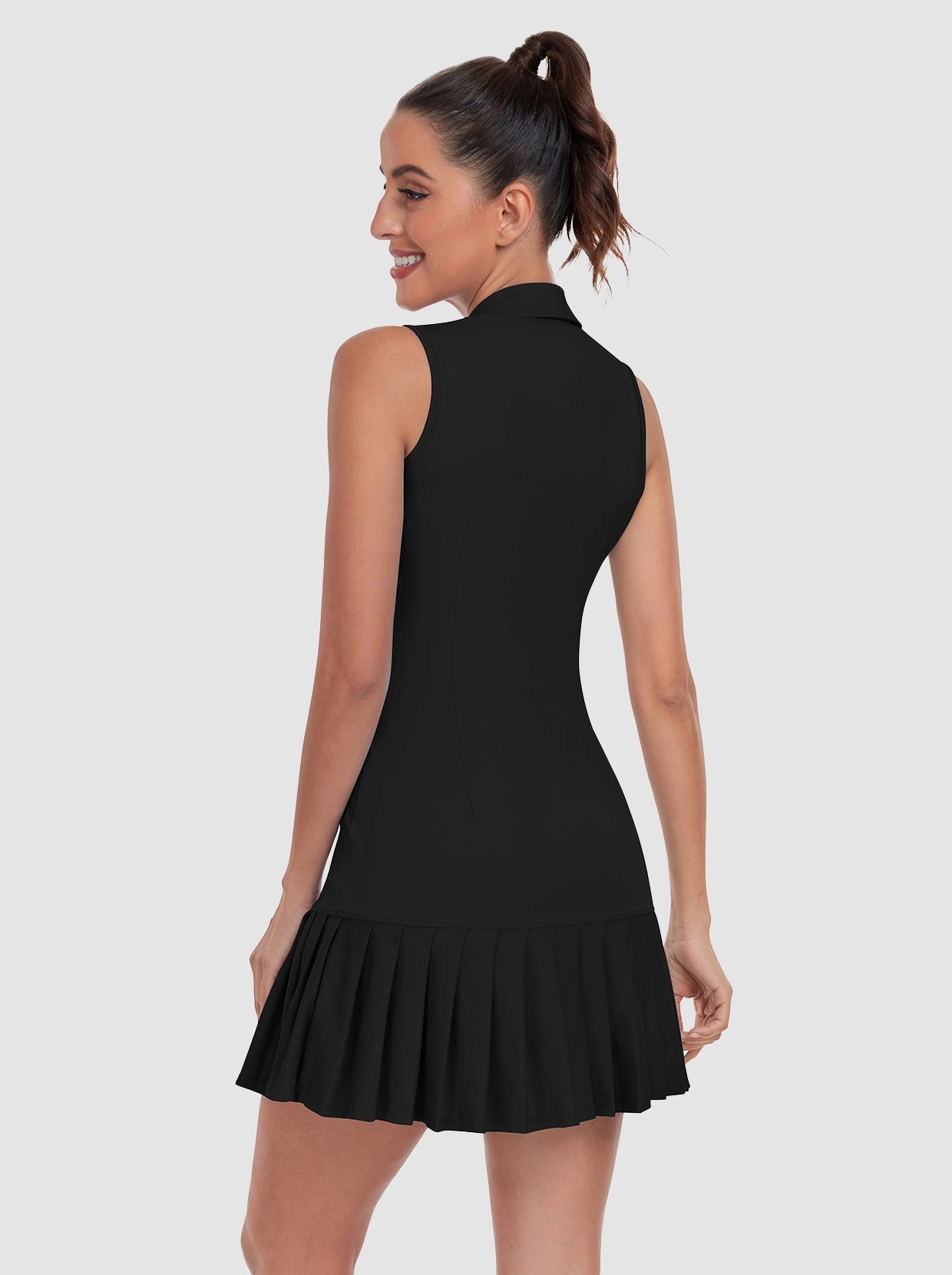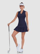 Get ready to play in style with our V-neck Sleeveless Dress. This playful dress is made from a lightweight, quick-dry fabric that keeps you cool. The stretch fabric and sleeveless cut offer unrestricted movement. It’s got a fun pleated hem and built-in shorts for all the coverage you need, whether you’re swinging on the golf course, acing it on the tennis court, or smashing it at pickleball.
