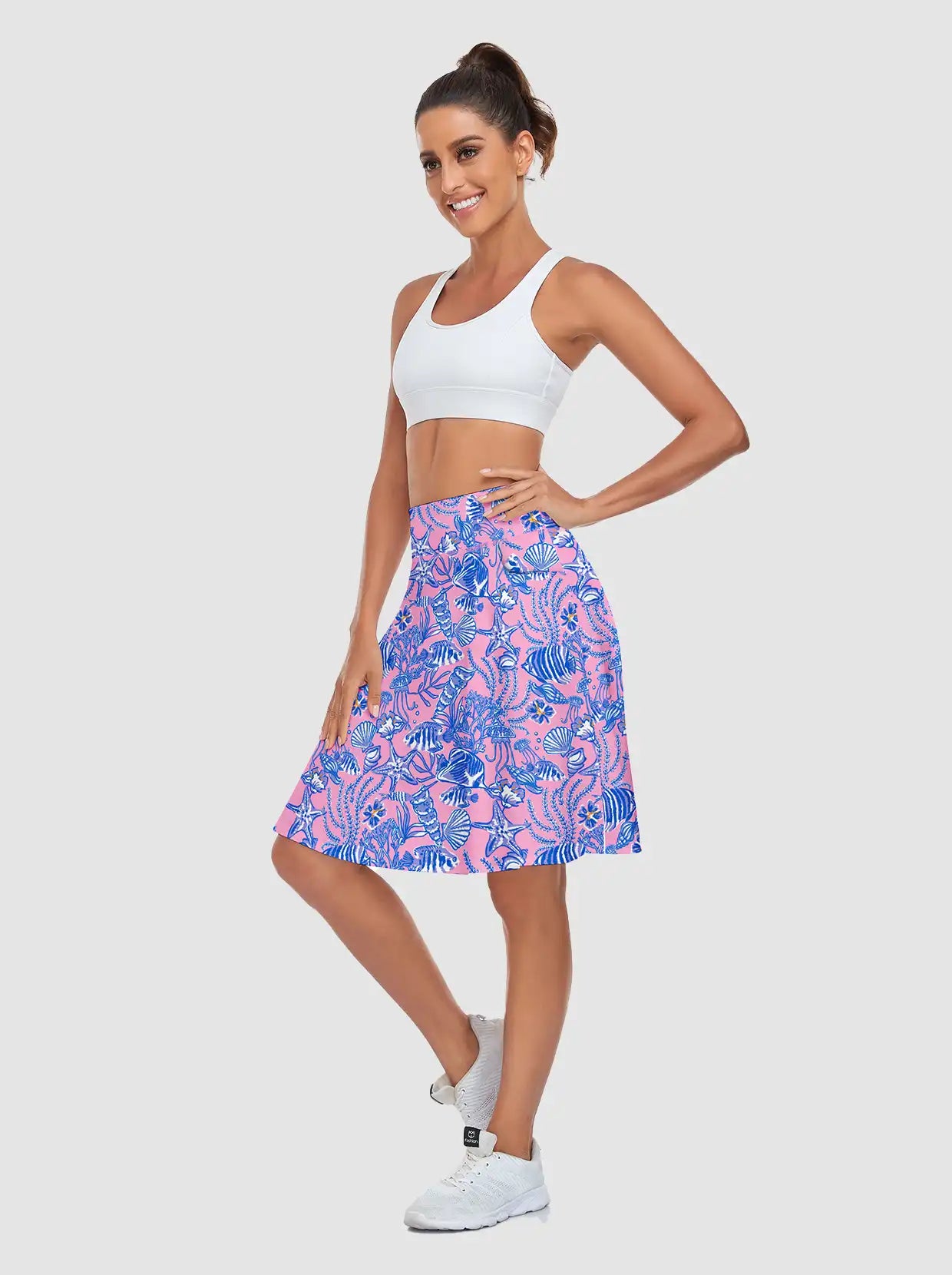The skorts, featuring built-in shorts for added coverage and confidence, are constructed from lightweight, moisture-wicking fabrics that ensure breathability and freedom of movement throughout your game.