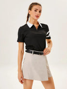 Black V-neck Short-sleeved Polo Golf and Tennis Top
