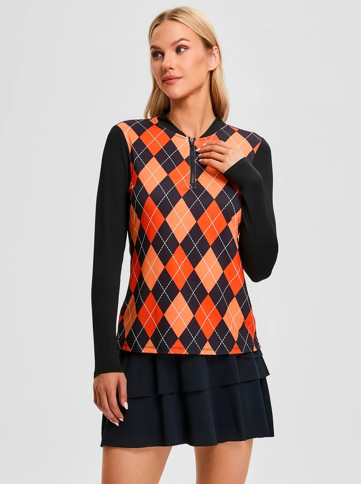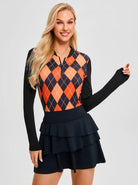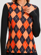 Pumpkin Color and Black Argyle Quarter-Zip Long-sleeve Shirt