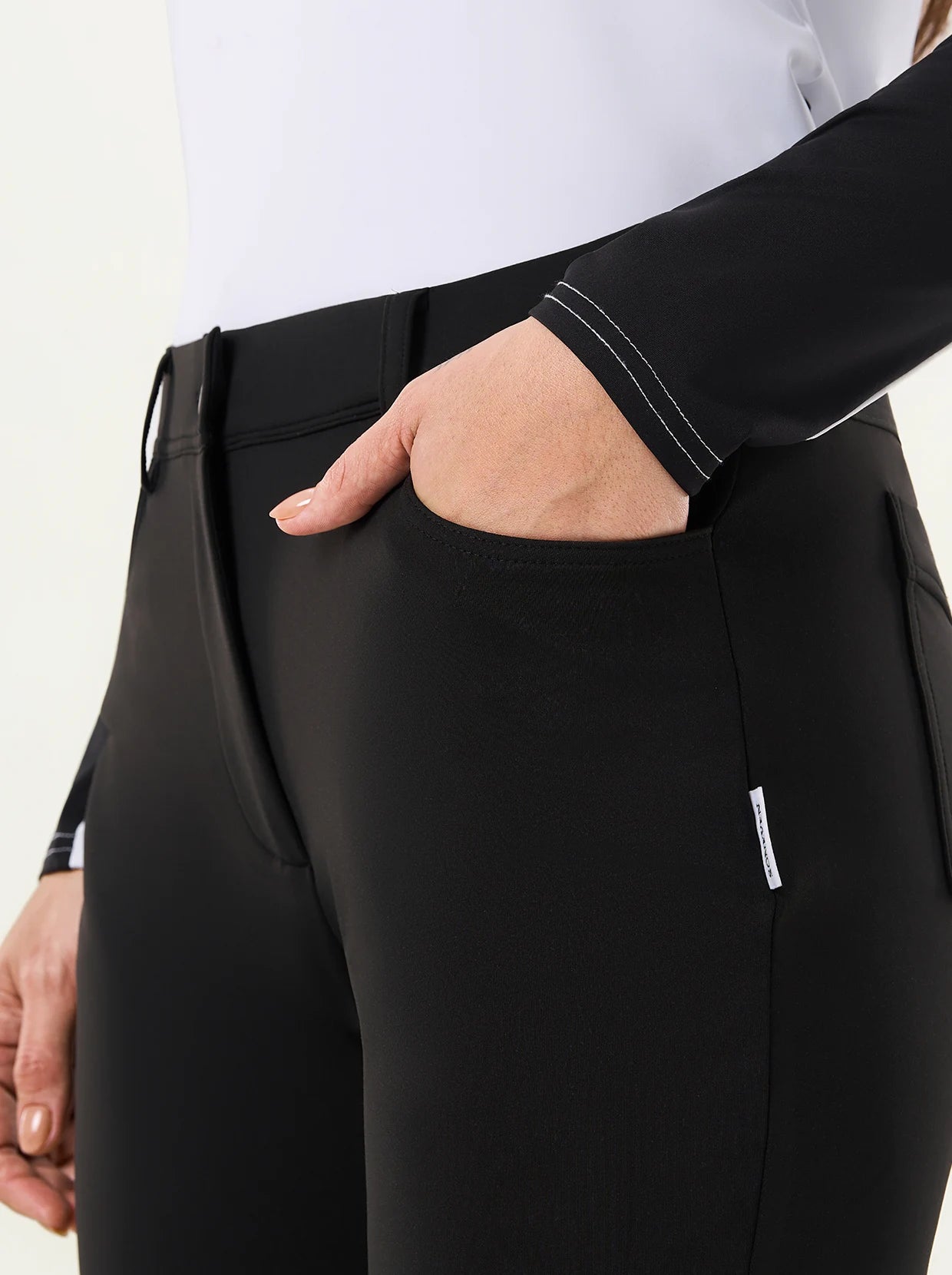 Swing into comfort with our thermal golf pants that blend performance with style. The high-elastic fabric moves with you through every shot, while the cozy fleece lining keeps the chill at bay. A white embroidered golfer pattern adds personality to the back, while the button-zip fly and belt loops deliver that polished, traditional trouser look.