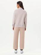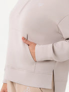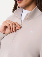 Elevate your everyday style with our versatile beige quarter-zip sweatshirt. Beyond its luxurious feel, it's consciously crafted from biodegradable fiber, making it a choice that’s kind to both your skin and Mother Earth. The stand collar zips up for customized warmth, while the ribbed cuffs and hem provide a secure, comfortable fit. Keep your essentials handy in the spacious kangaroo pocket.