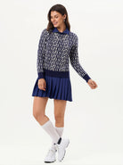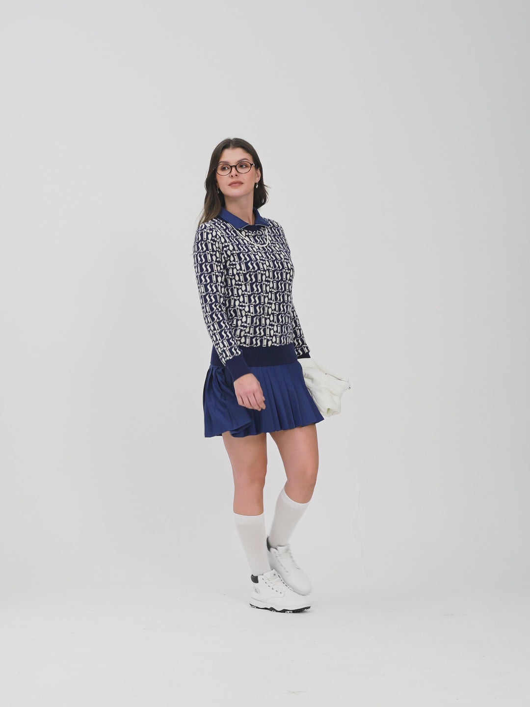 Navy Geometric Soft-Knit Crew-neck Golf Sweater