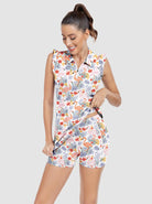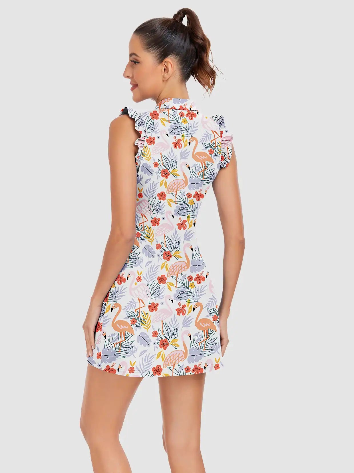 34" Flamingo and Leaf Quarter-zip Ruffled Sleeveless Active Dress