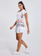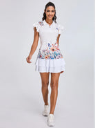 White Flamingo Quarter-zip Ruffled Short-sleeve Polo Shirt