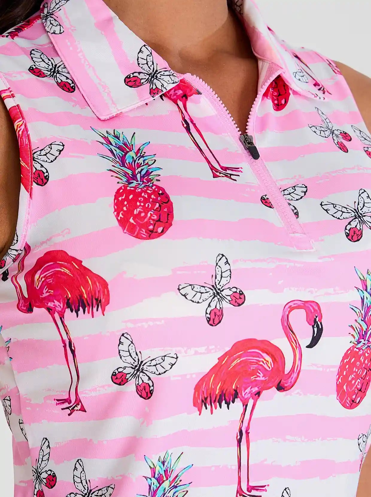 Pink Flamingo Sleeveless Quarter-Zip Golf Top