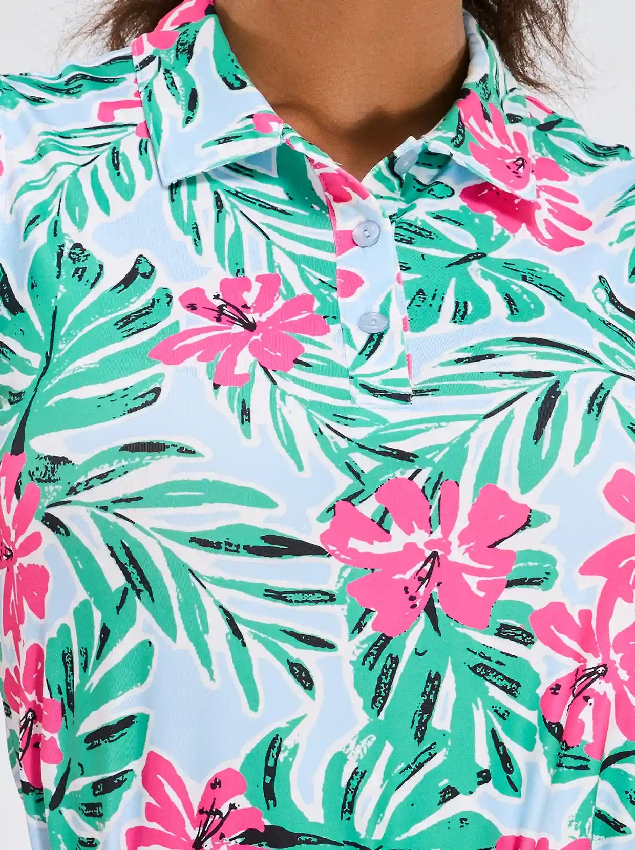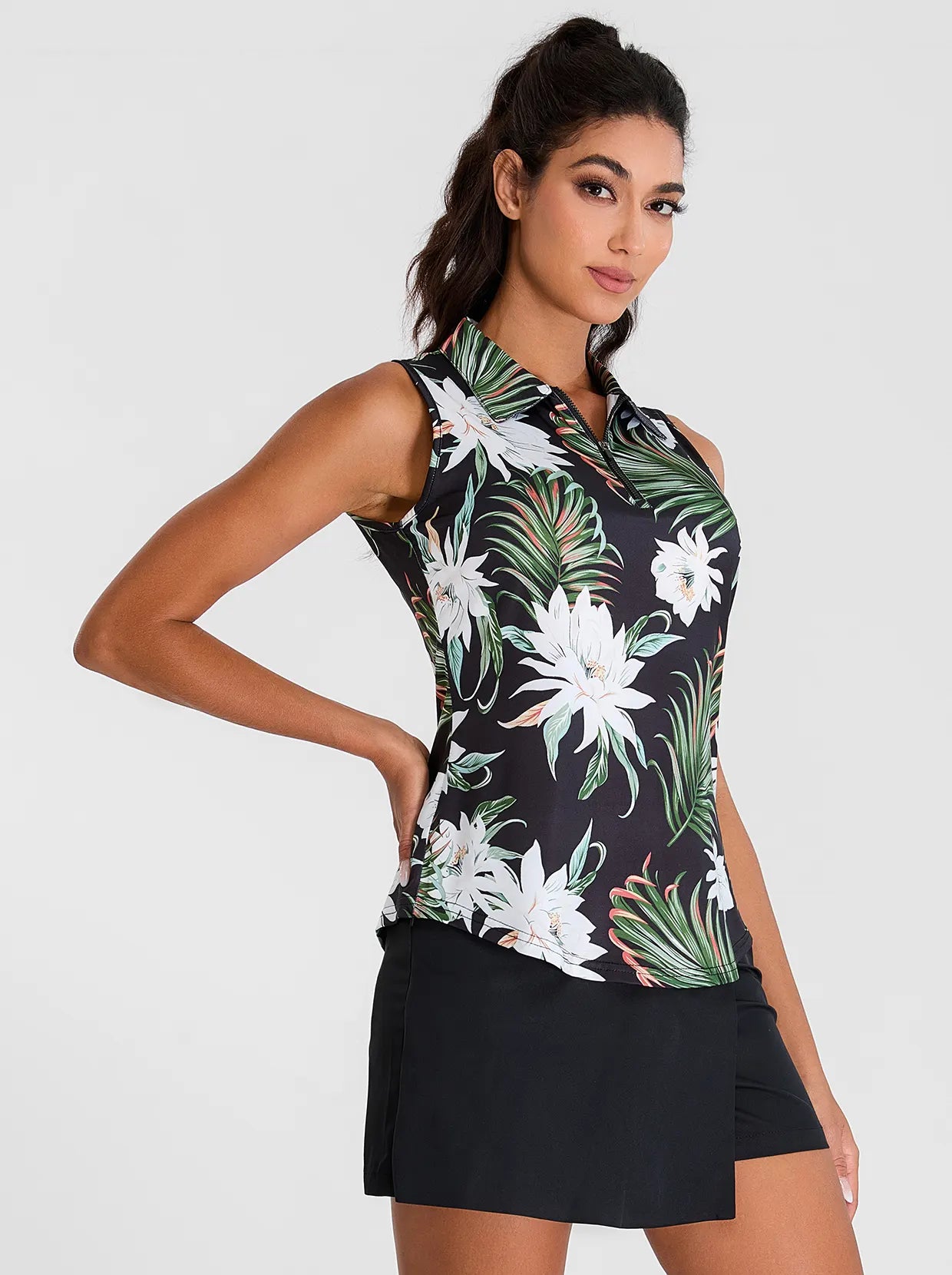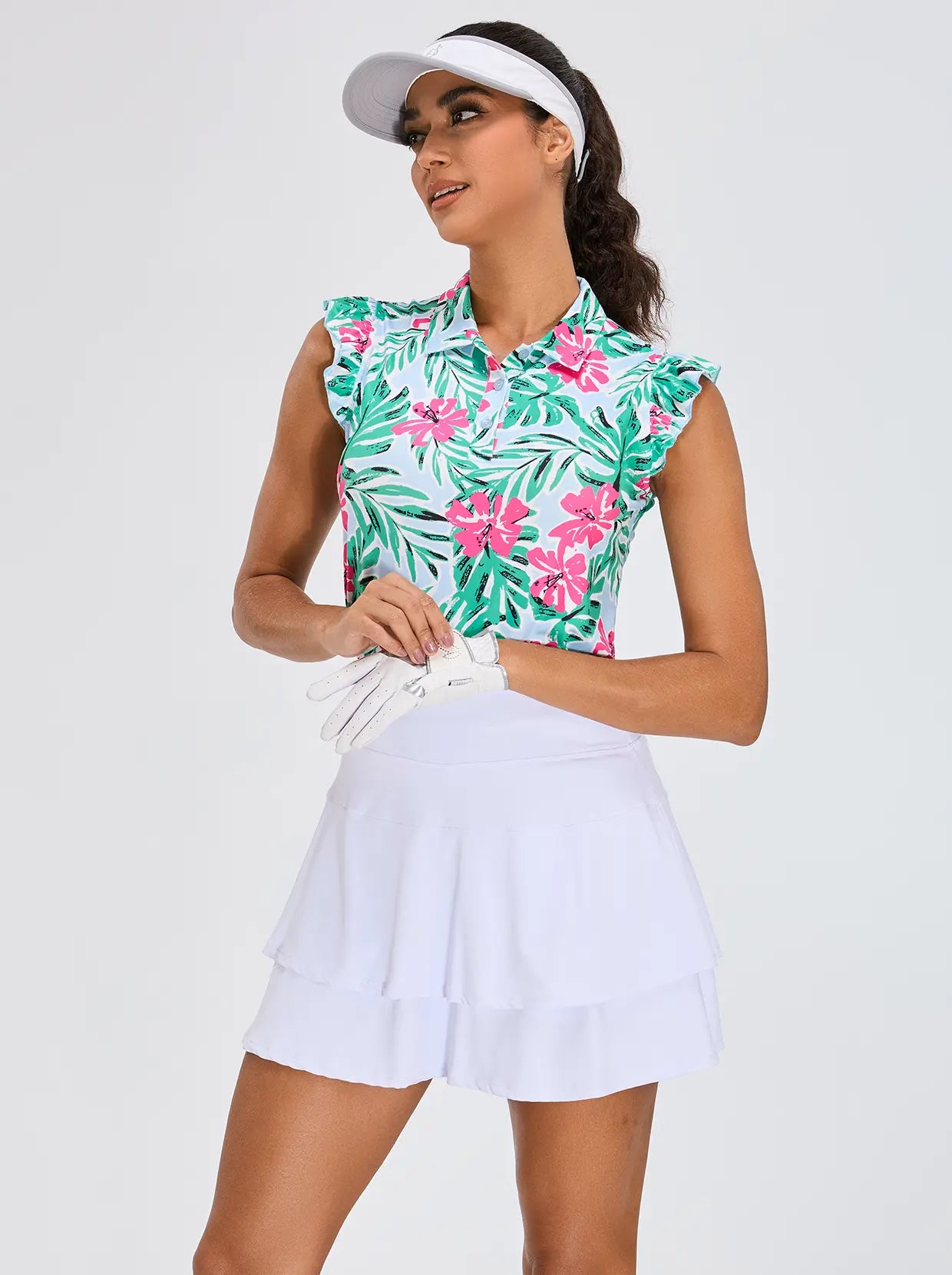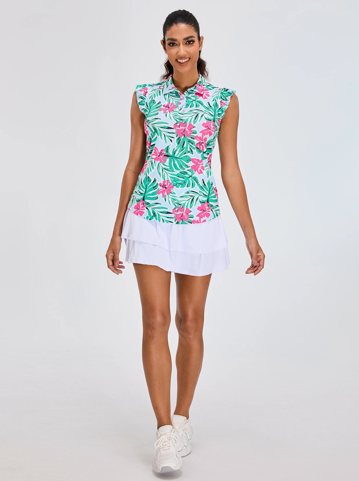 Elevate your golf wardrobe with our Floral Fantasy collection, designed to inject a burst of color and fun into your game! Featuring vibrant floral graphics, our golf shirt and skirt are crafted to ensure you look and feel fabulous on the course. Each shirt boasts a contoured fit that flatters your curves, enhancing both your style and performance.