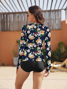 White Floral Quarter-zip Long-sleeve Rash Guard with Thumbholes