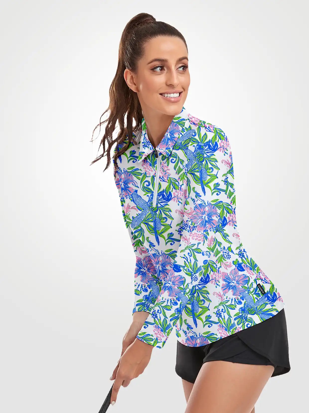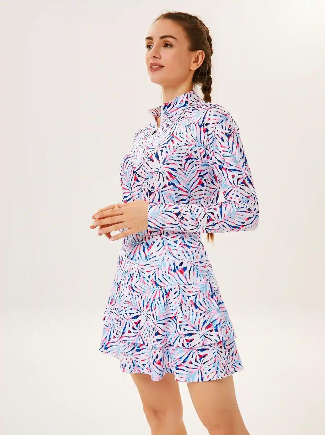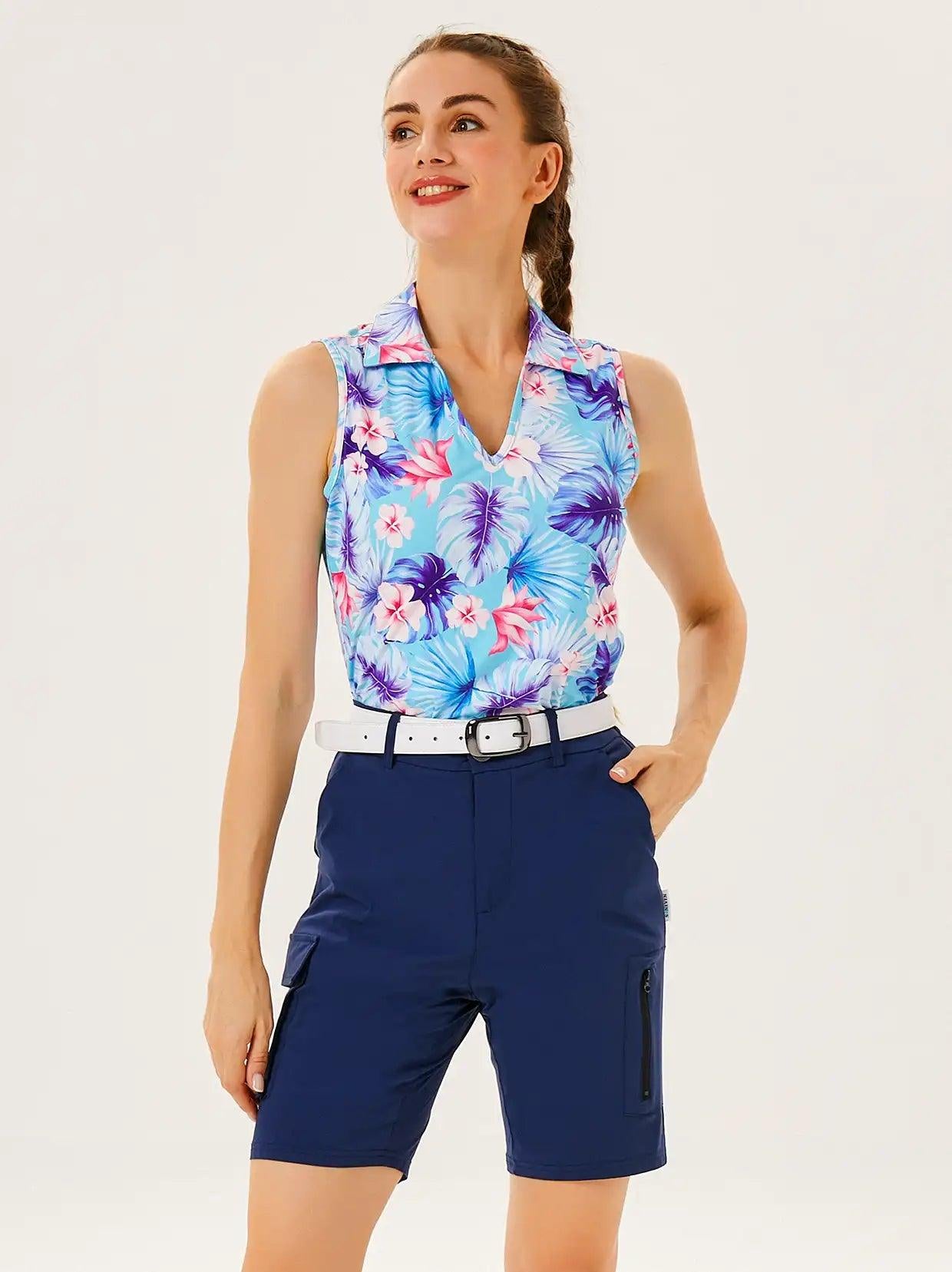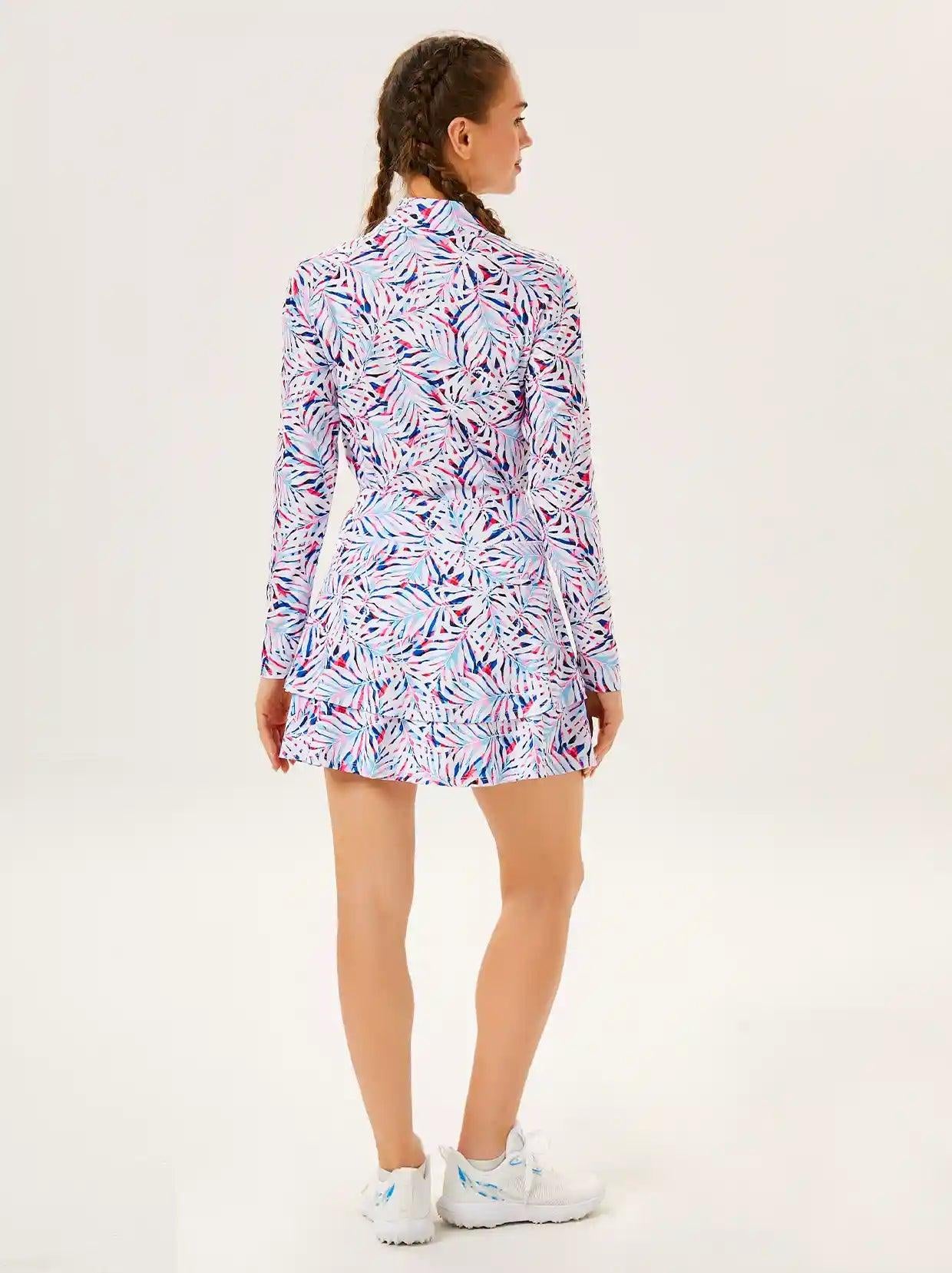 Elevate your golf wardrobe with our Floral Fantasy collection, designed to inject a burst of color and fun into your game! Featuring vibrant floral graphics, our golf shirt and skirt are crafted to ensure you look and feel fabulous on the course. Each shirt boasts a contoured fit that flatters your curves, enhancing both your style and performance.