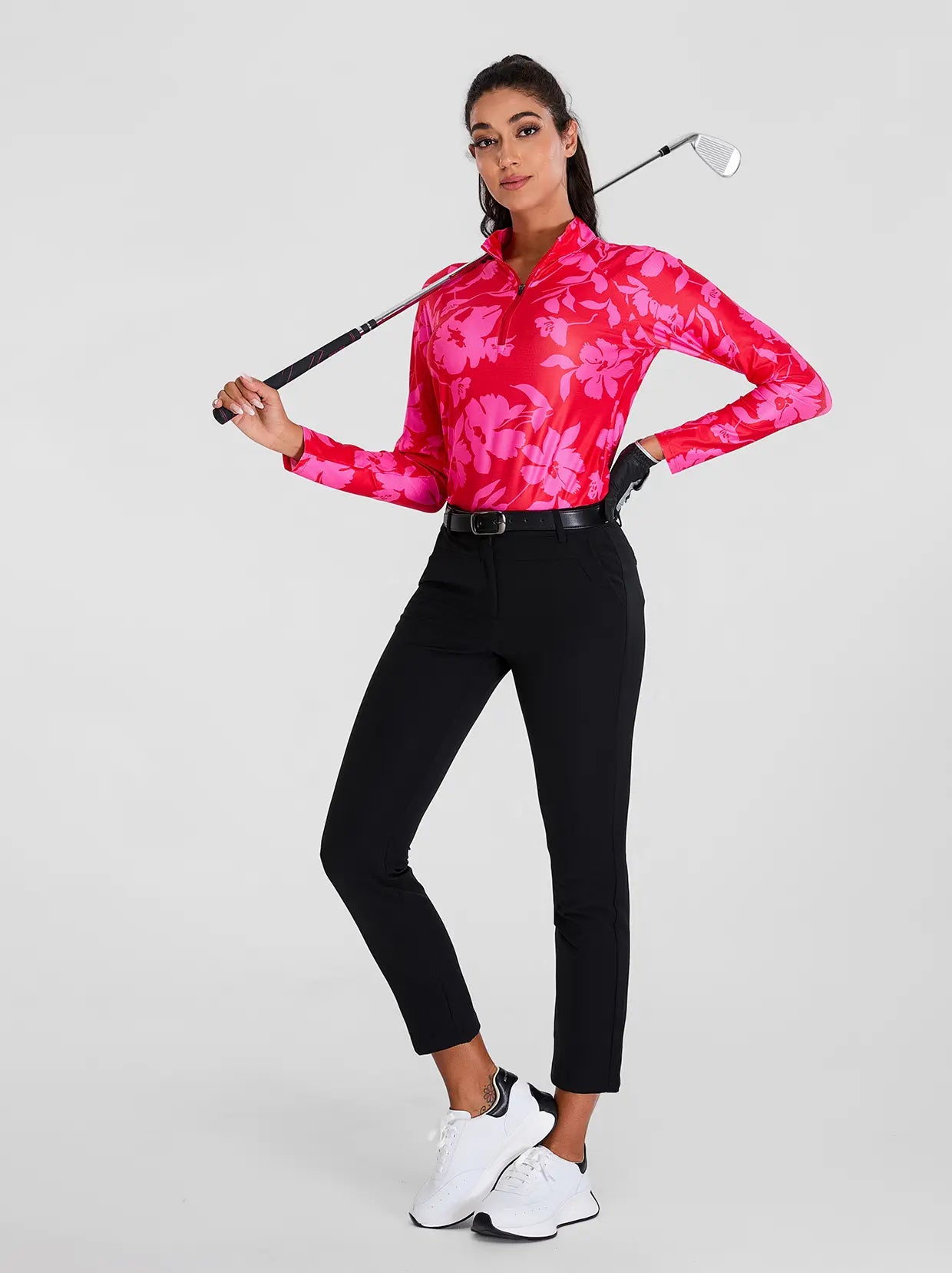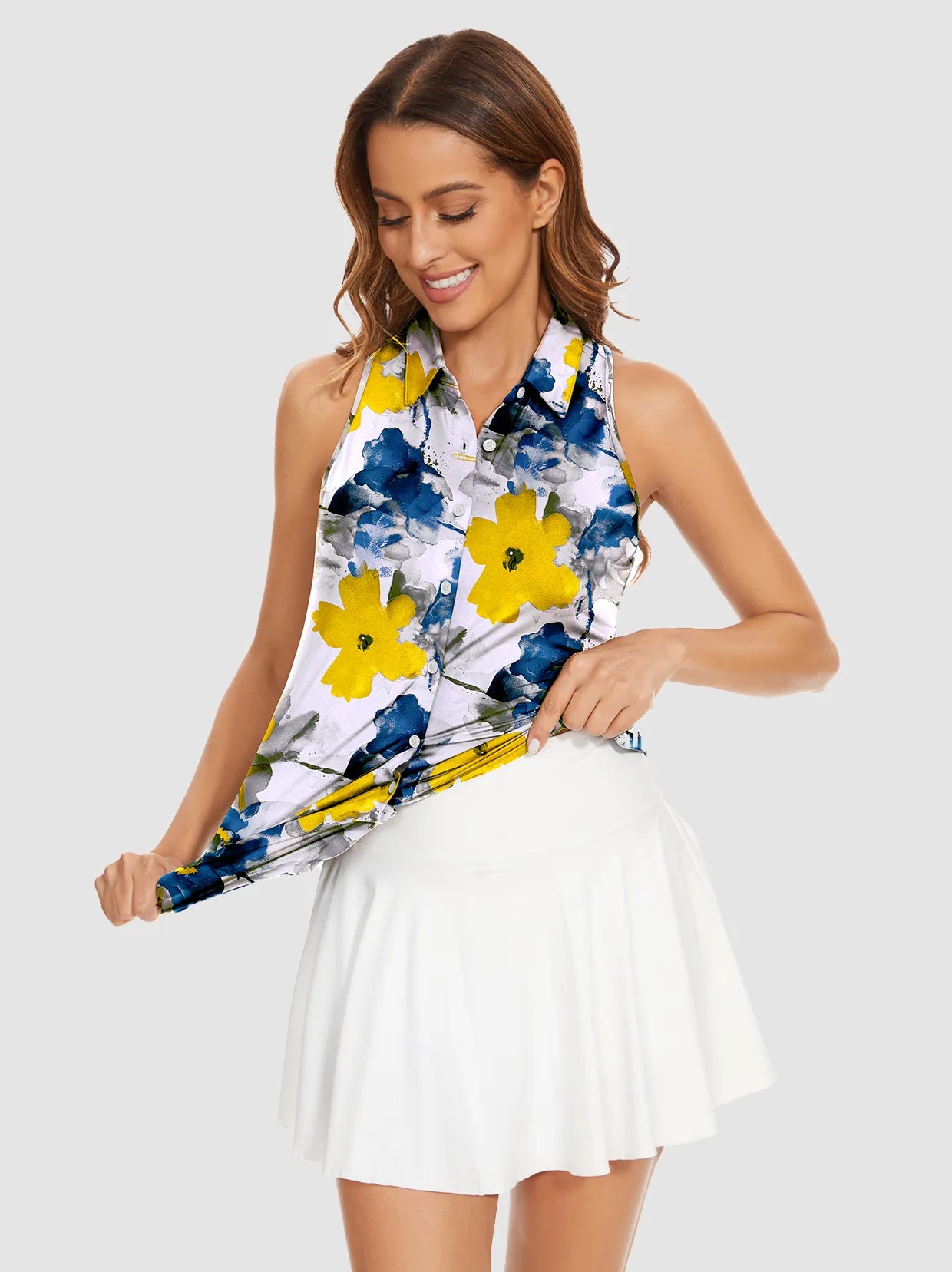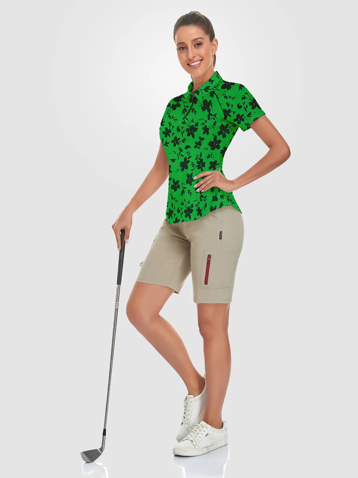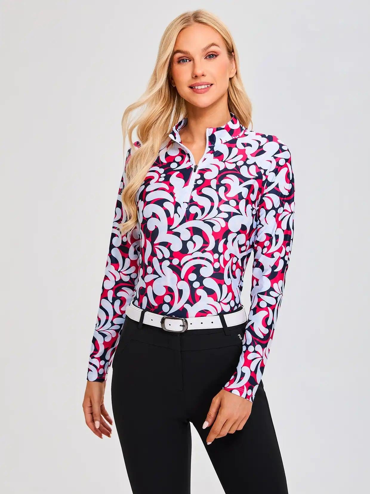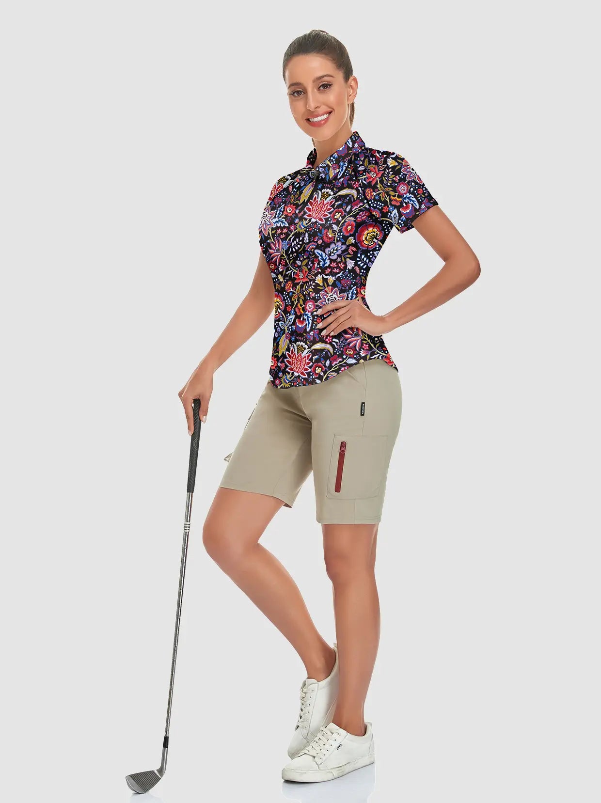 Elevate your golf wardrobe with our Floral Fantasy collection, designed to inject a burst of color and fun into your game! Featuring vibrant floral graphics, our golf shirt and skirt are crafted to ensure you look and feel fabulous on the course. Each shirt boasts a contoured fit that flatters your curves, enhancing both your style and performance.
